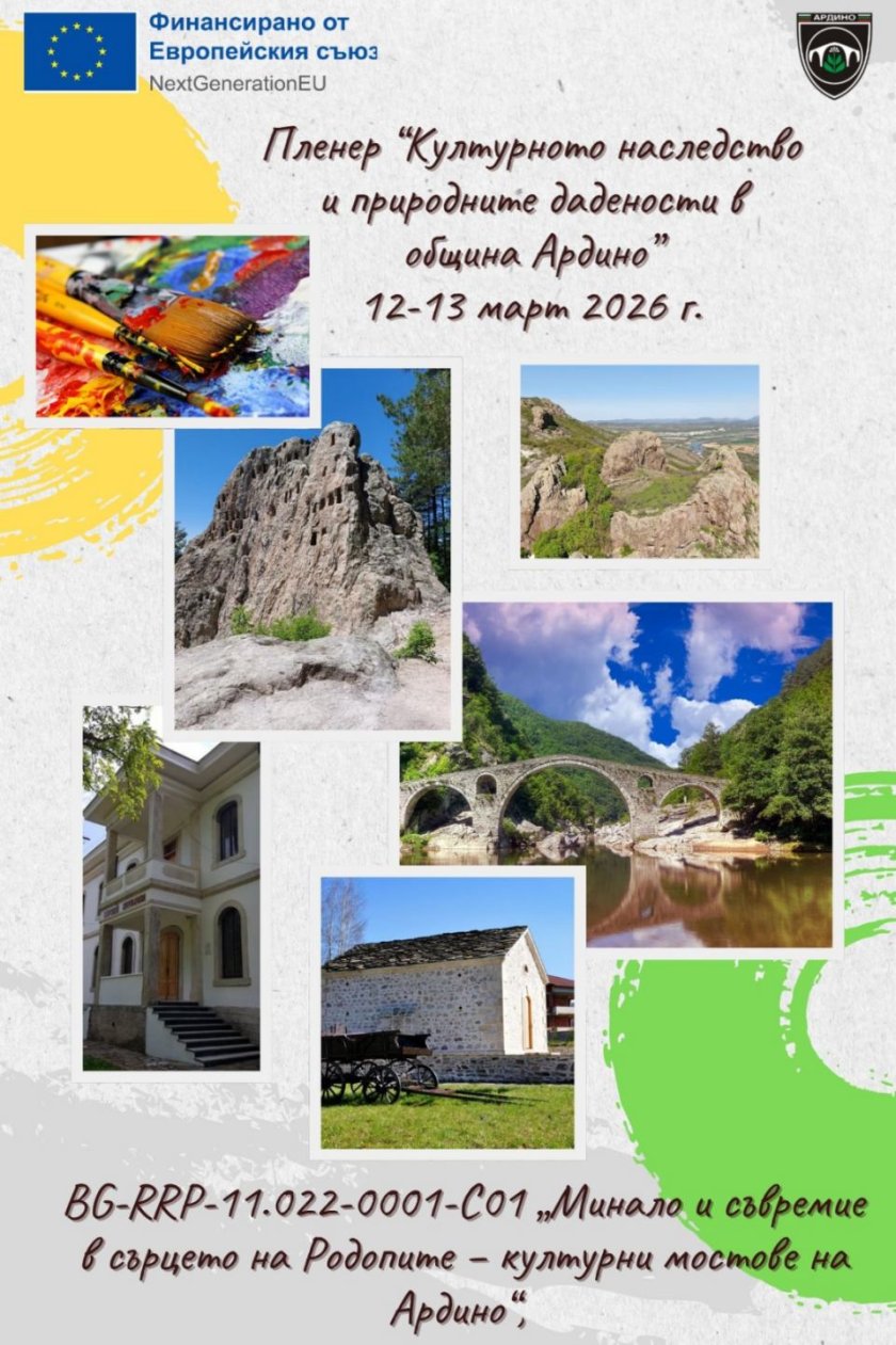 Община Ардино организира художествен пленер на тема „Културното наследство и природните дадености в община Ардино“. Събитието ще се проведе на 12 и 13 март. В рамките на два дни художници от цялата страна ще работят на открито. Те ще търсят вдъхновение в природата и в историята на района.