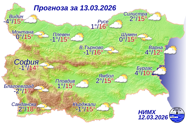 Вижте какво ще бъде времето на 13 март 2026 г.