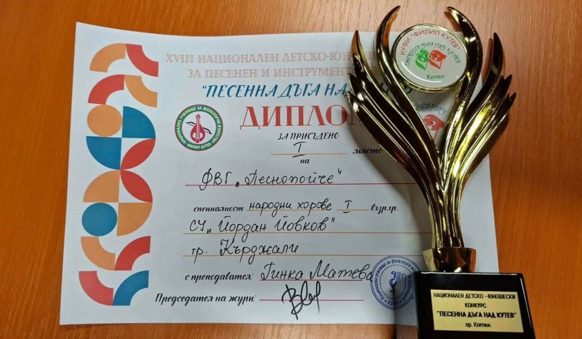 Първо място за „Песнопойче“ и грамота за ръководителя